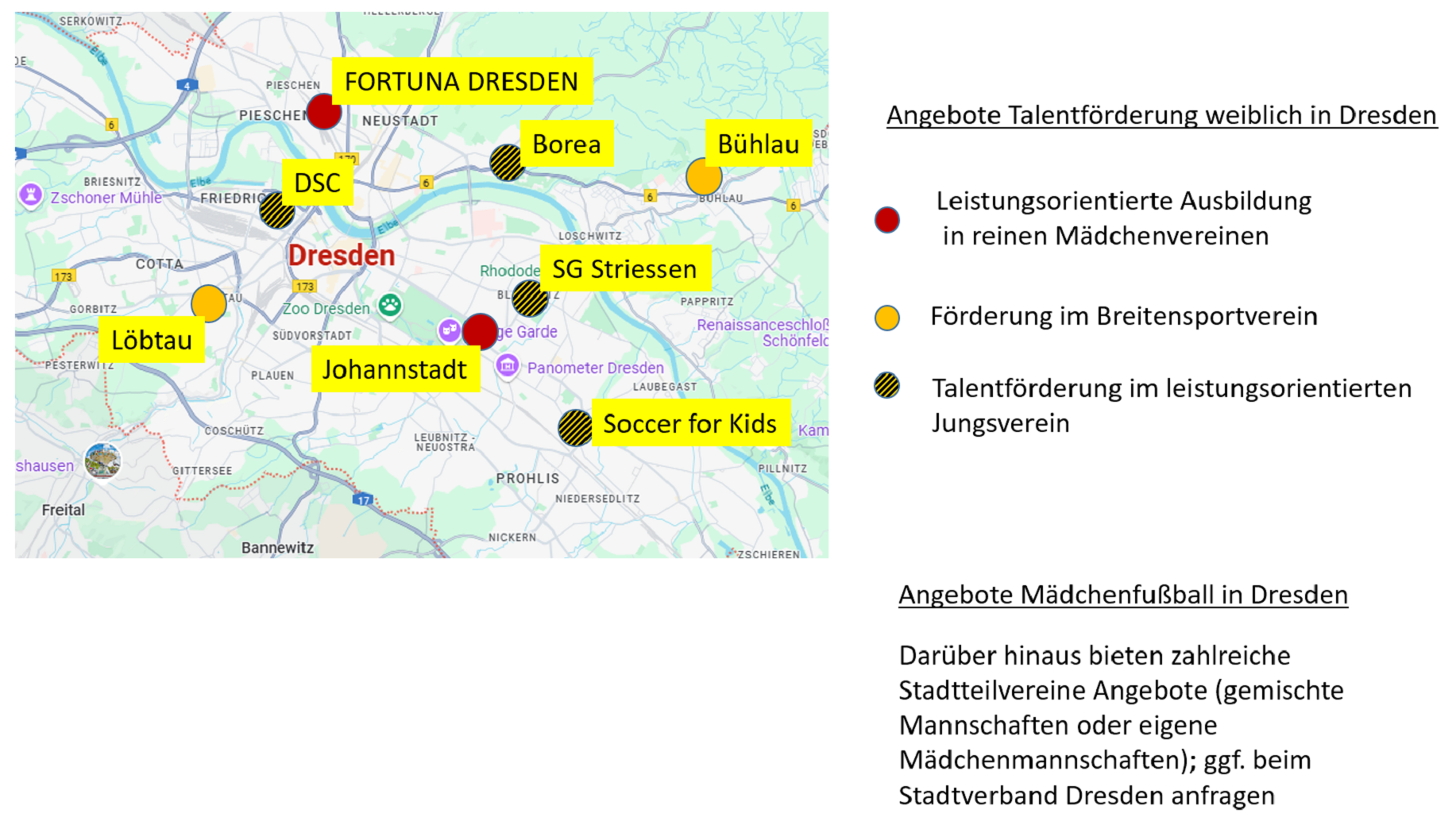 Der Förderverein „Mädchenfußball in Dresden e.V.“ arbeitet ehrenamtlich und hat sich zum Ziel gesetzt, die Rahmenbedingungen für junge Fußballerinnen in Dresden zu verbessern, damit noch mehr Mädchen und junge Frauen eine Möglichkeit bekommen, ihr Talent in Fußballvereinen und Förderprogrammen weiterzuentwickeln.